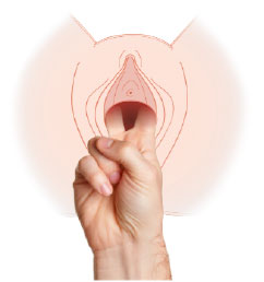 Palcem wskazującym popchnij pessar do góry, do momentu, gdy jedynie końcówka trzonu pessara będzie widoczna lub wyczuwalna palcem od strony wejścia do pochwy narząd wypadający powinien się opierać o kapelusz pessara |