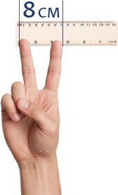 | 2Przy pomocy palców zmierz w poziomie maksymalną szerokość wnętrza pochwy. W podanym przykładzie szerokość wnętrza pochwy wynosi 8 cm.